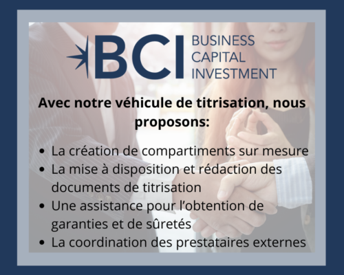 Lire la suiteBusiness Capital Investment SCA est une société en commandite par action qui est soumise à la loi du 22 mars 2004sur la titrisation au Luxembourg.