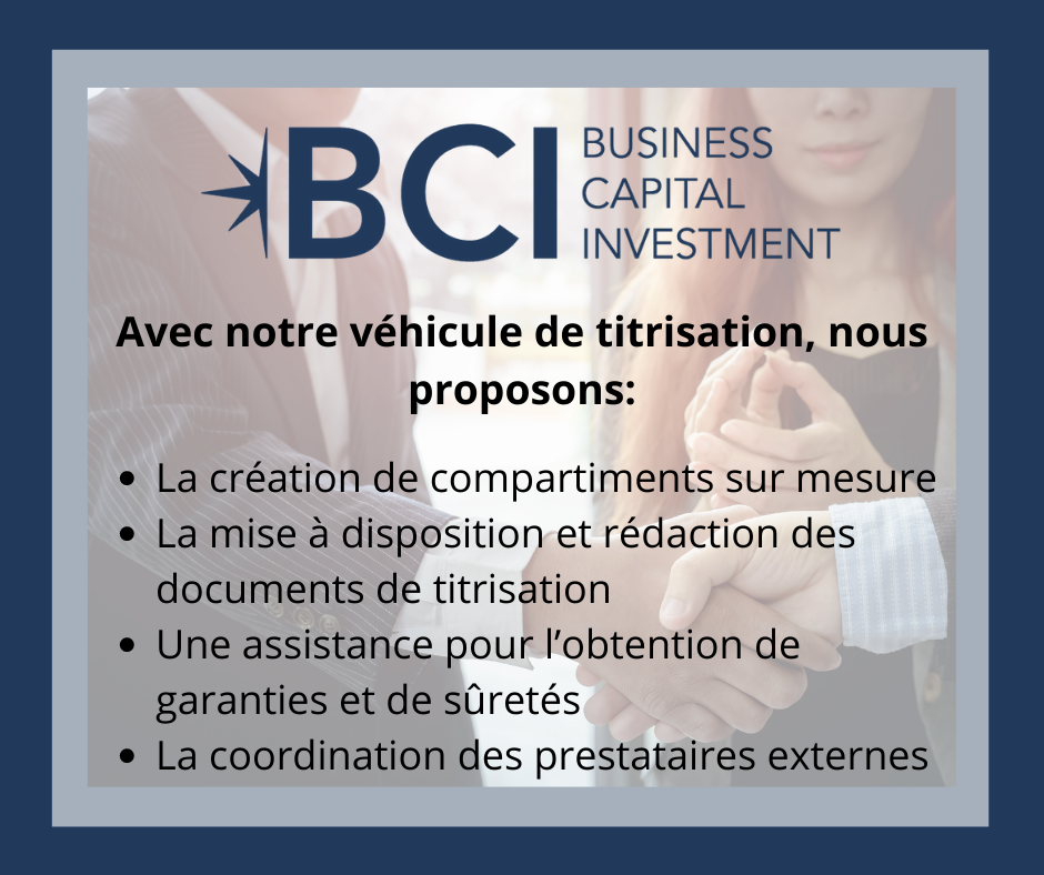 Business Capital Investment SCA est une société en commandite par action qui est soumise à la loi du 22 mars 2004 sur la titrisation au Luxembourg.